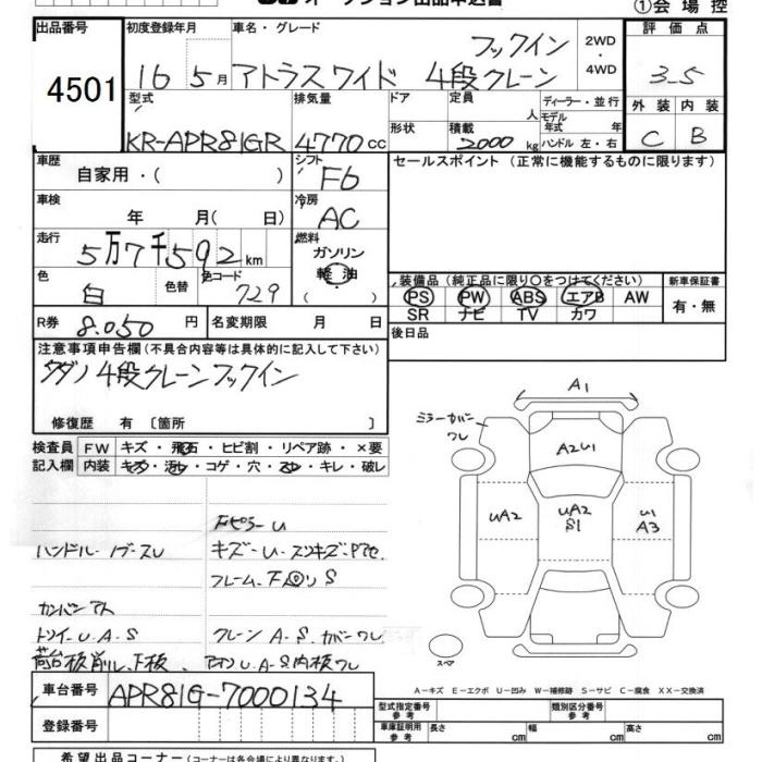 Год выпуска2004 Пробег 58 000 км КузовAPR81GR Комплектация4 STEPS CRANE HOOK IN