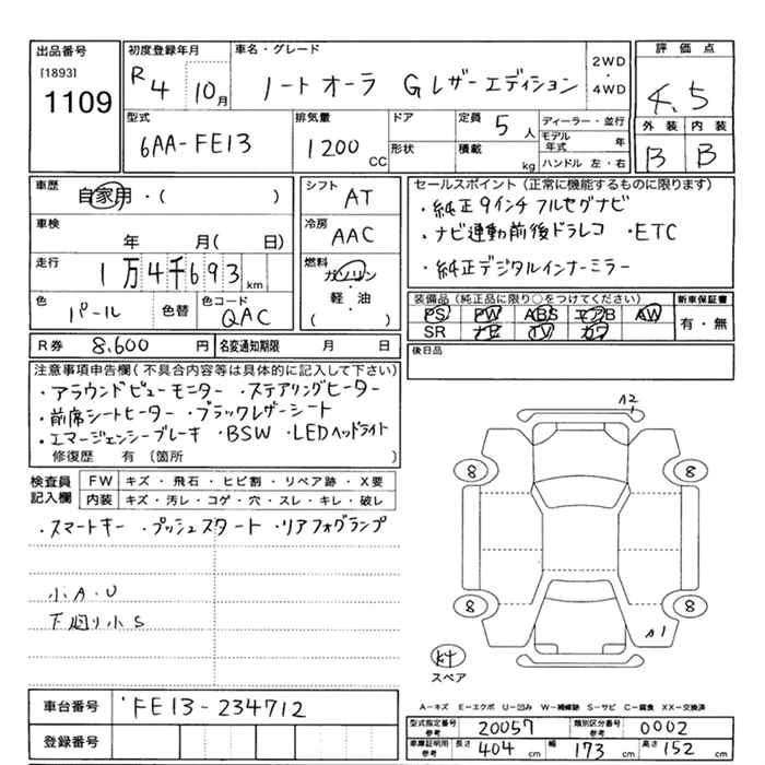 NISSAN AURA 2022 г., лот № 1109
