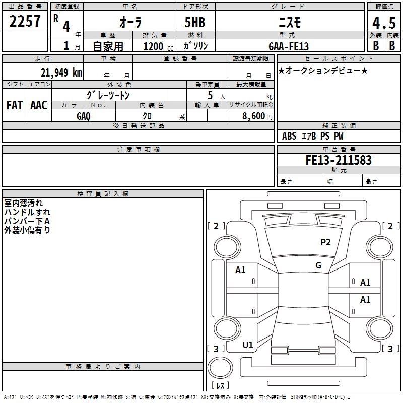NISSAN AURA 2022 г., лот № 2257