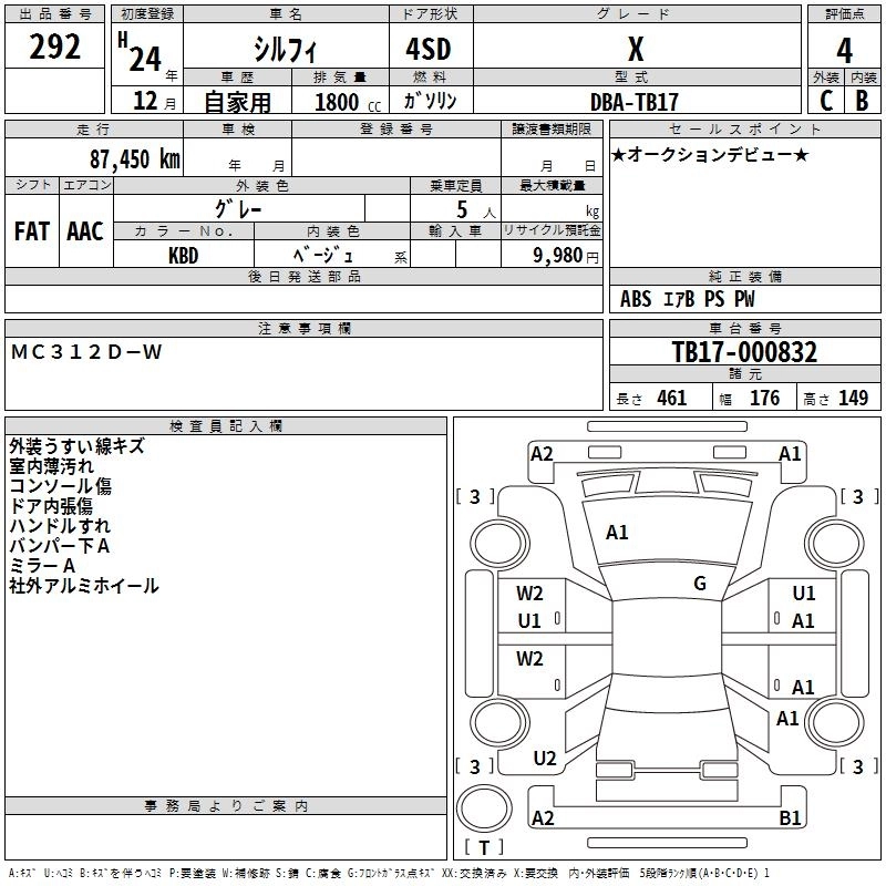 NISSAN BLUEBIRD SYLPHY 2012 г., лот № 292