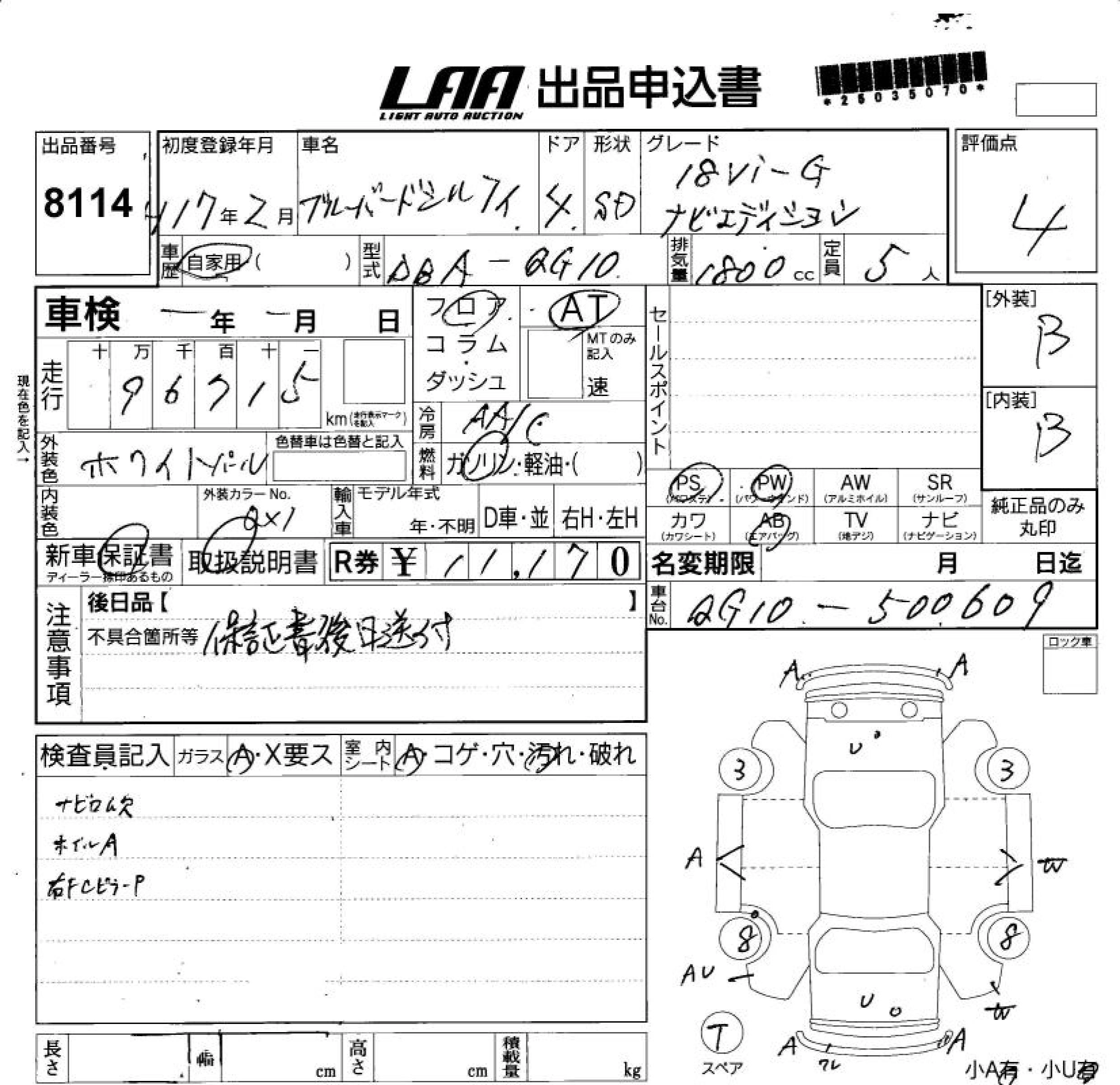 Статус выставлен на аукцион Лот 8114 Аукцион LAA Shikoku Дата аукциона 11.03.2026