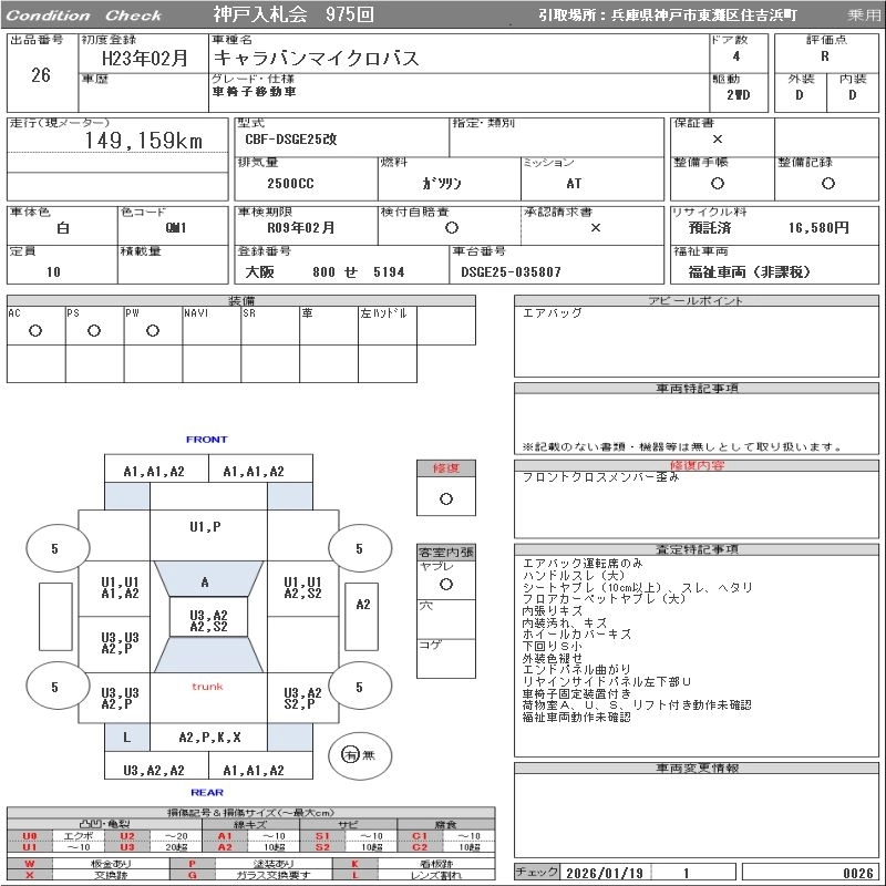 NISSAN CARAVAN BUS 2011 г., лот № 26