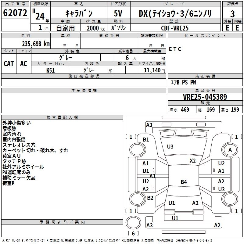 NISSAN CARAVAN 2012 г., лот № 62072