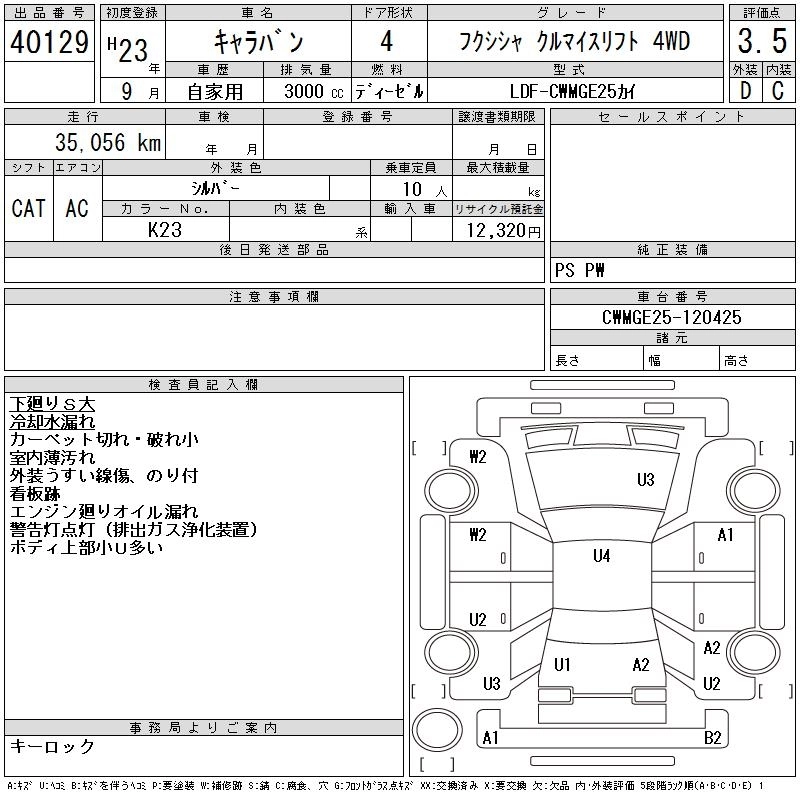 NISSAN CARAVAN 2011 г., лот № 40129