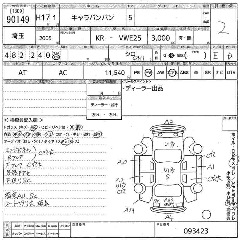 NISSAN CARAVAN 2005 г., лот № 90149