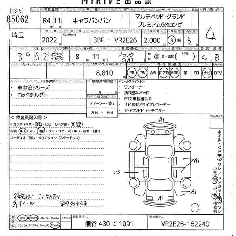 Статус выставлен на аукцион Лот 85062 Аукцион MIRIVE Saitama Дата аукциона 28.01.2026