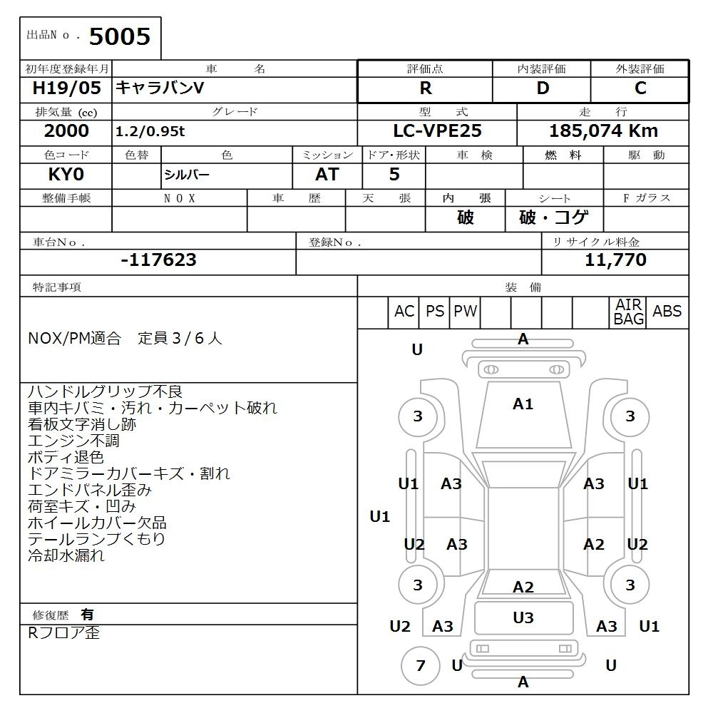 NISSAN CARAVAN 2007 г., лот № 5005