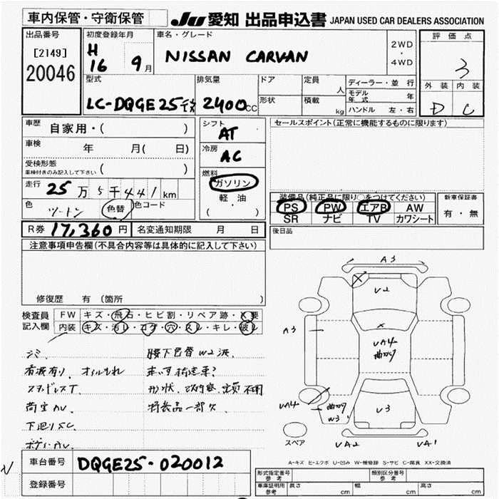 NISSAN CARAVAN 2004 г., лот № 20046