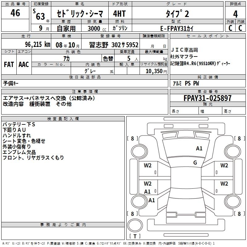 NISSAN CEDRIC CIMA 1988 г., лот № 46