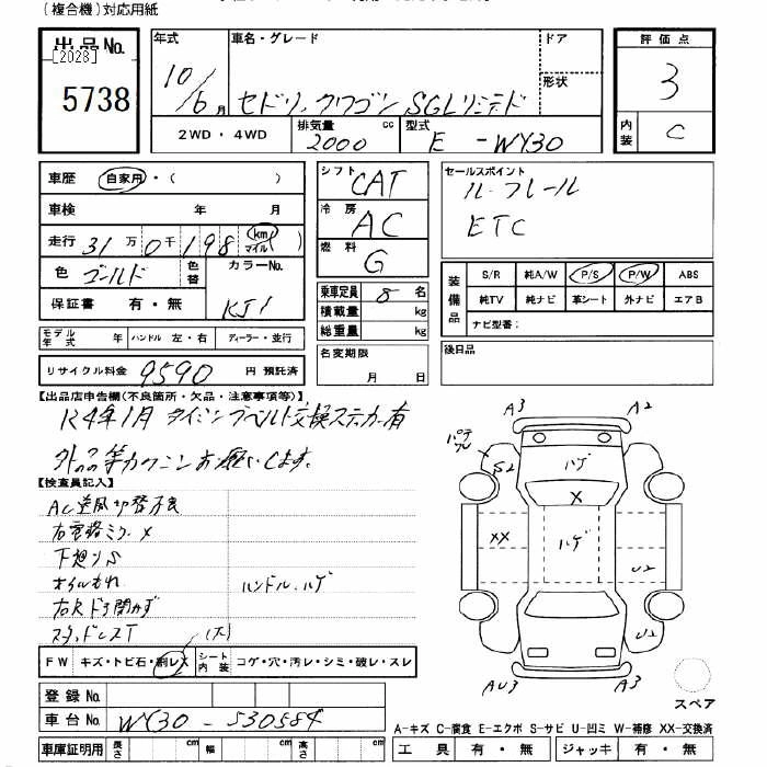 Год выпуска1998 Пробег 310 000 км КузовWY30 КомплектацияSGL LTD