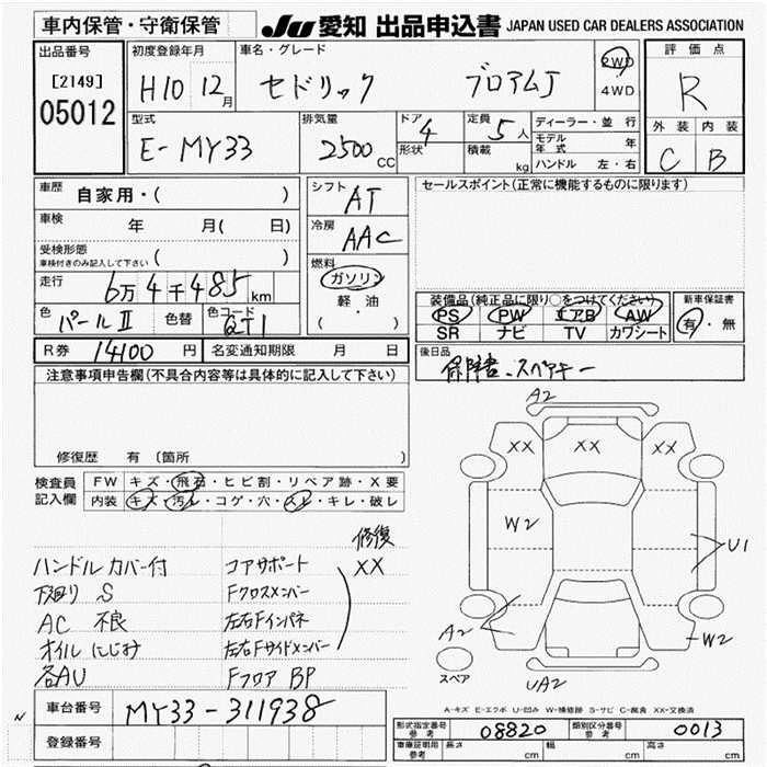 NISSAN CEDRIC 1998 г., лот № 5012