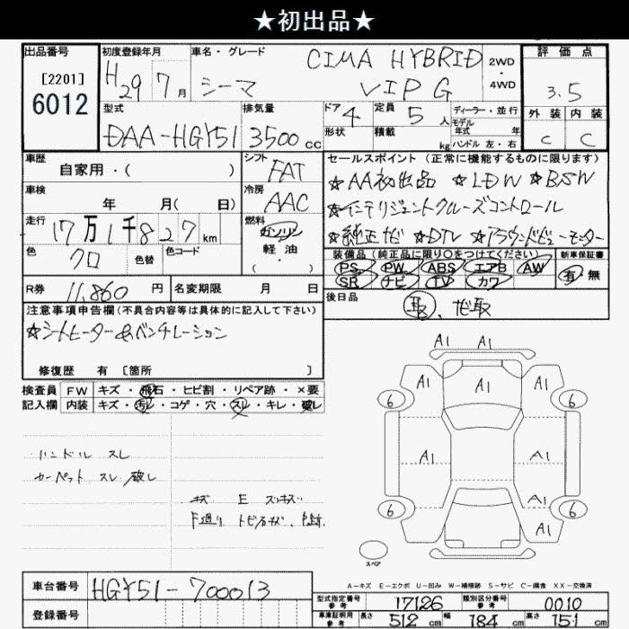 NISSAN CIMA 2017 г., лот № 6012