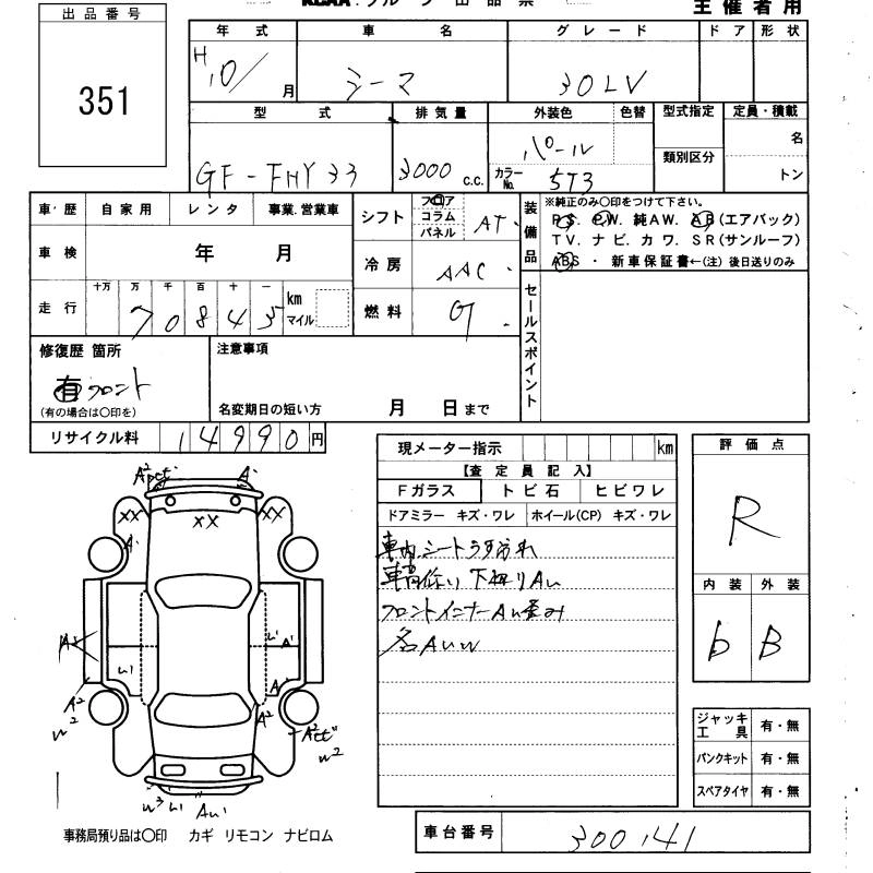 NISSAN CIMA 1998 г., лот № 351
