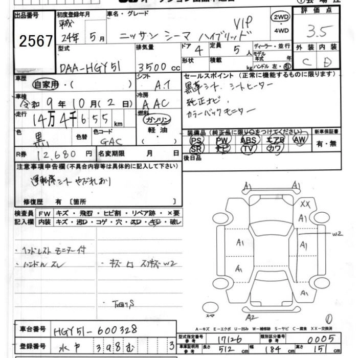 NISSAN CIMA 2012 г., лот № 2567