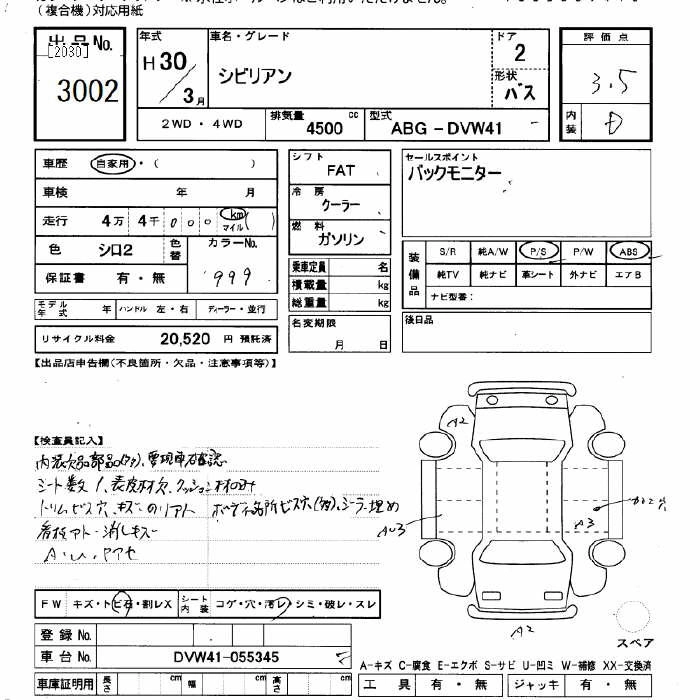 Стартовая цена авто на аукционе 500 000 ¥