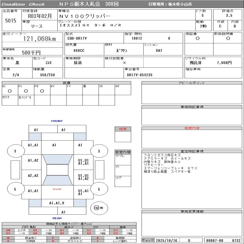 Статус продан Лот 5015 Аукцион NPS Tochigi Дата аукциона 28.10.2025