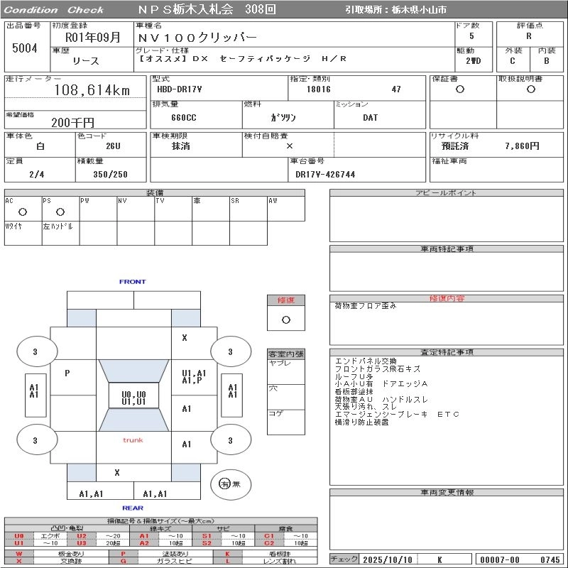 Статус продан Лот 5004 Аукцион NPS Tochigi Дата аукциона 28.10.2025
