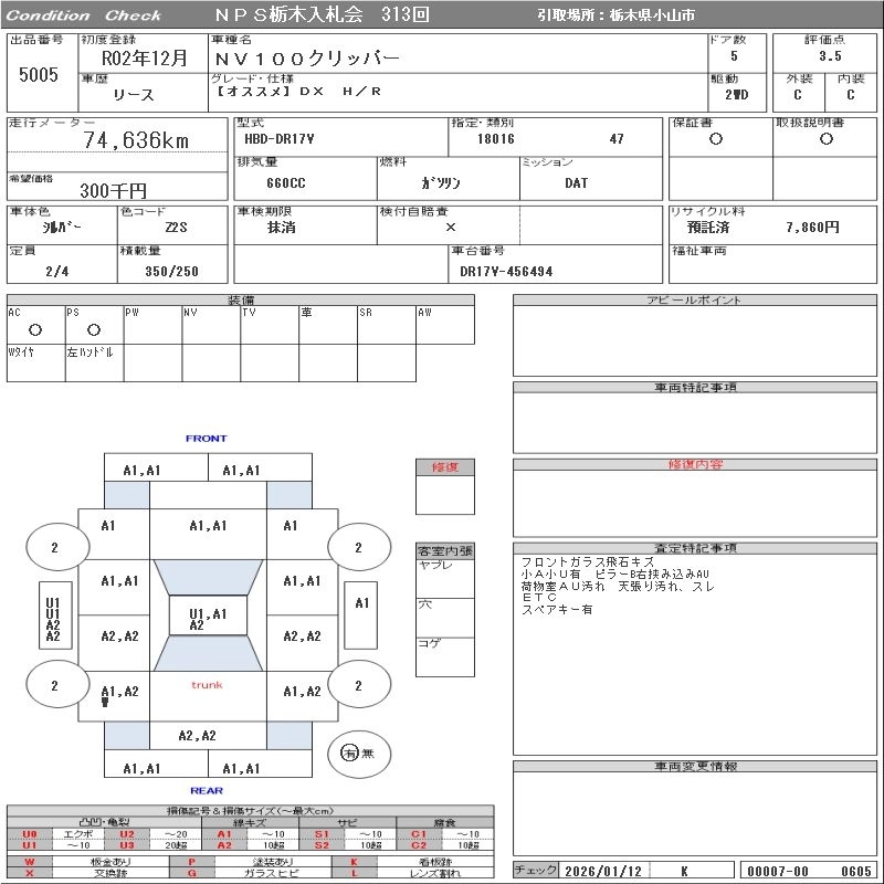 Статус выставлен на аукцион Лот 5005 Аукцион NPS Tochigi Дата аукциона 27.01.2026