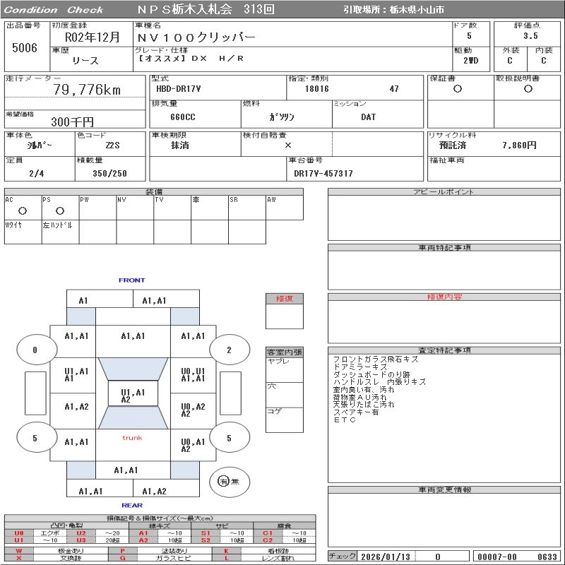 Статус выставлен на аукцион Лот 5006 Аукцион NPS Tochigi Дата аукциона 27.01.2026