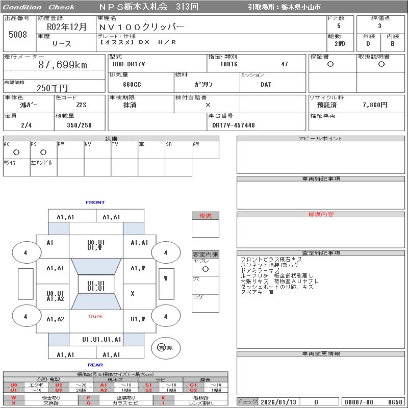 Статус выставлен на аукцион Лот 5008 Аукцион NPS Tochigi Дата аукциона 27.01.2026