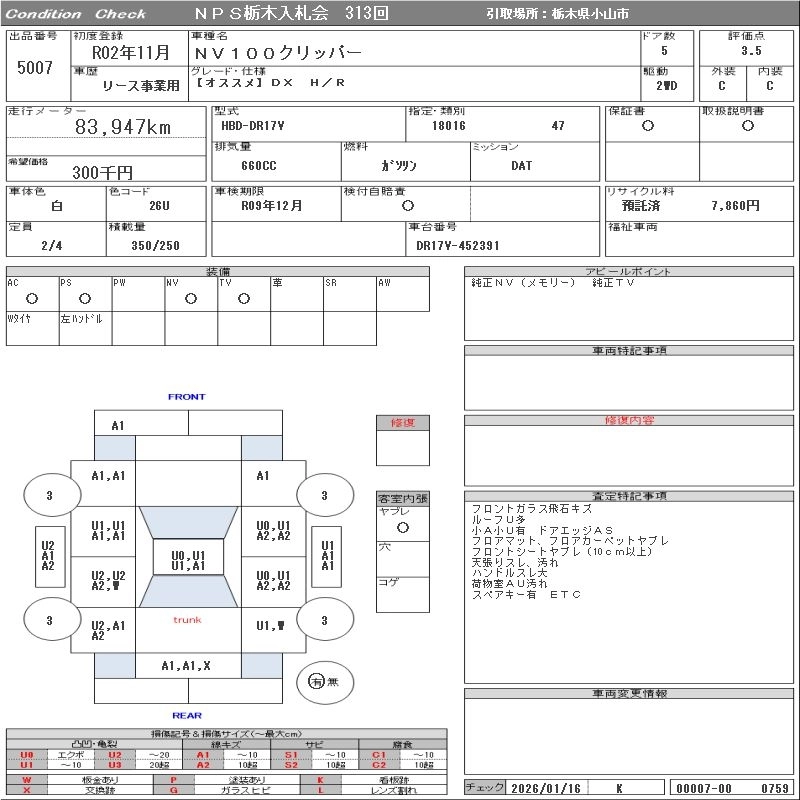 Статус выставлен на аукцион Лот 5007 Аукцион NPS Tochigi Дата аукциона 27.01.2026