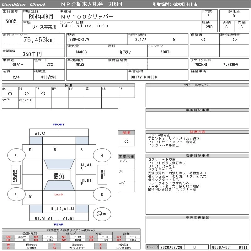 Статус выставлен на аукцион Лот 5005 Аукцион NPS Tochigi Дата аукциона 10.03.2026