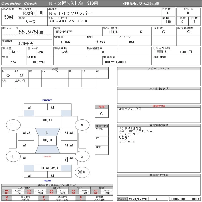 Статус выставлен на аукцион Лот 5004 Аукцион NPS Tochigi Дата аукциона 10.03.2026