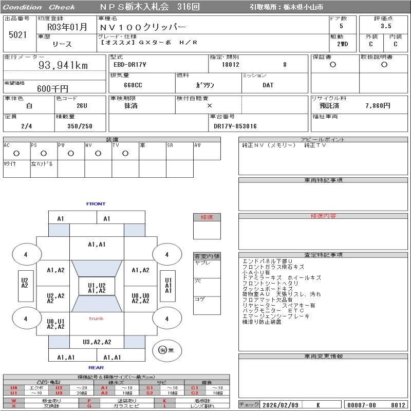 Статус выставлен на аукцион Лот 5021 Аукцион NPS Tochigi Дата аукциона 10.03.2026