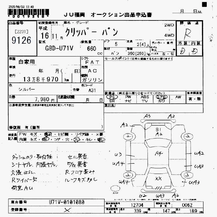 Статус не продан Лот 9126 Аукцион JU Fukuoka Дата аукциона 23.01.2026