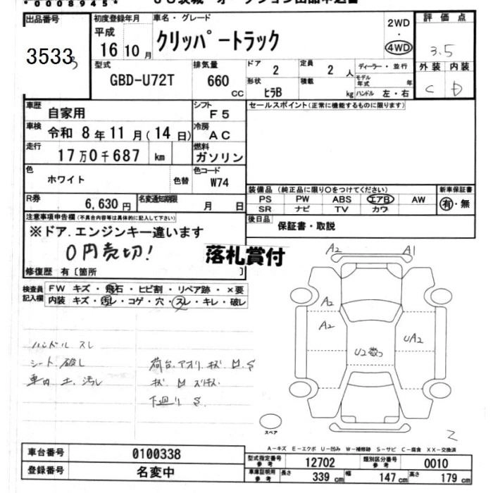 Статус выставлен на аукцион Лот 3533 Аукцион JU Ibaraki Дата аукциона 11.03.2026