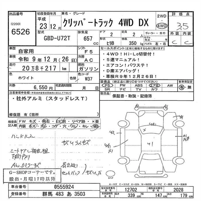 Статус выставлен на аукцион Лот 6526 Аукцион JU Gunma Дата аукциона 12.03.2026