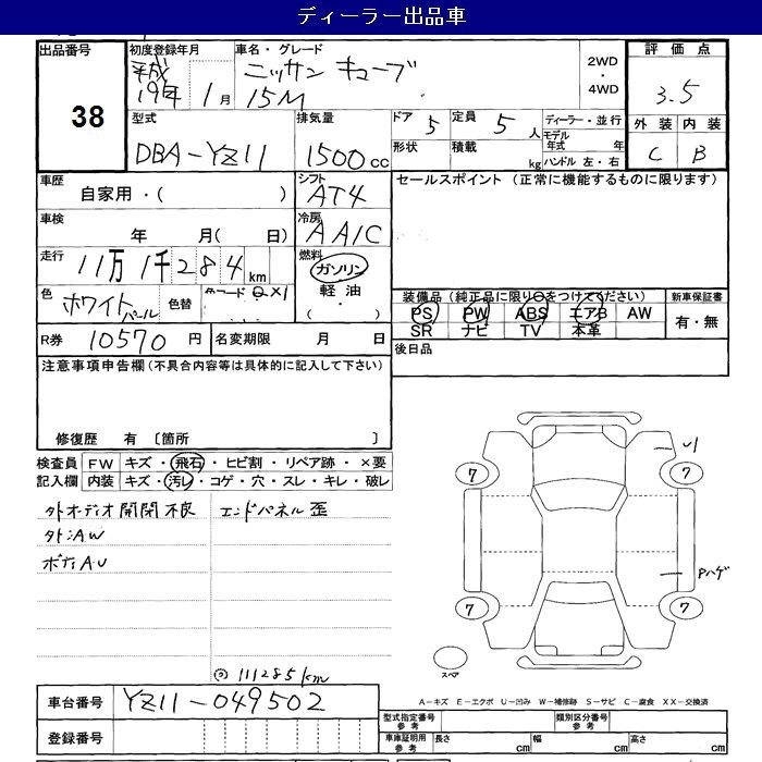 NISSAN CUBE 2007 г., лот № 38