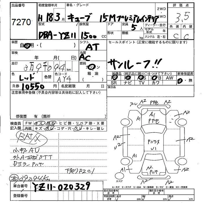 NISSAN CUBE 2006 г., лот № 7270
