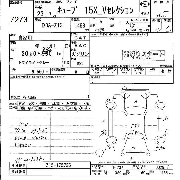 NISSAN CUBE 2011 г., лот № 7273