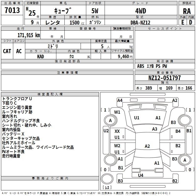 NISSAN CUBE 2013 г., лот № 7013