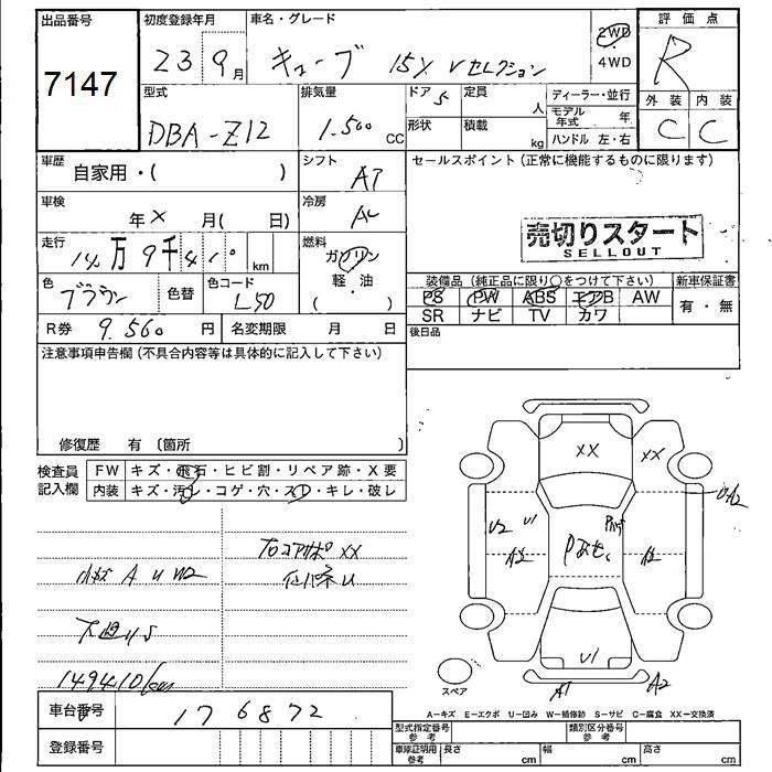 NISSAN CUBE 2011 г., лот № 7147