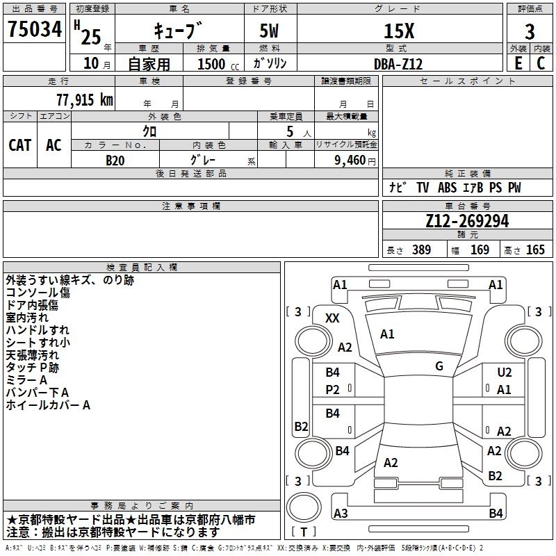 NISSAN CUBE 2013 г., лот № 75034