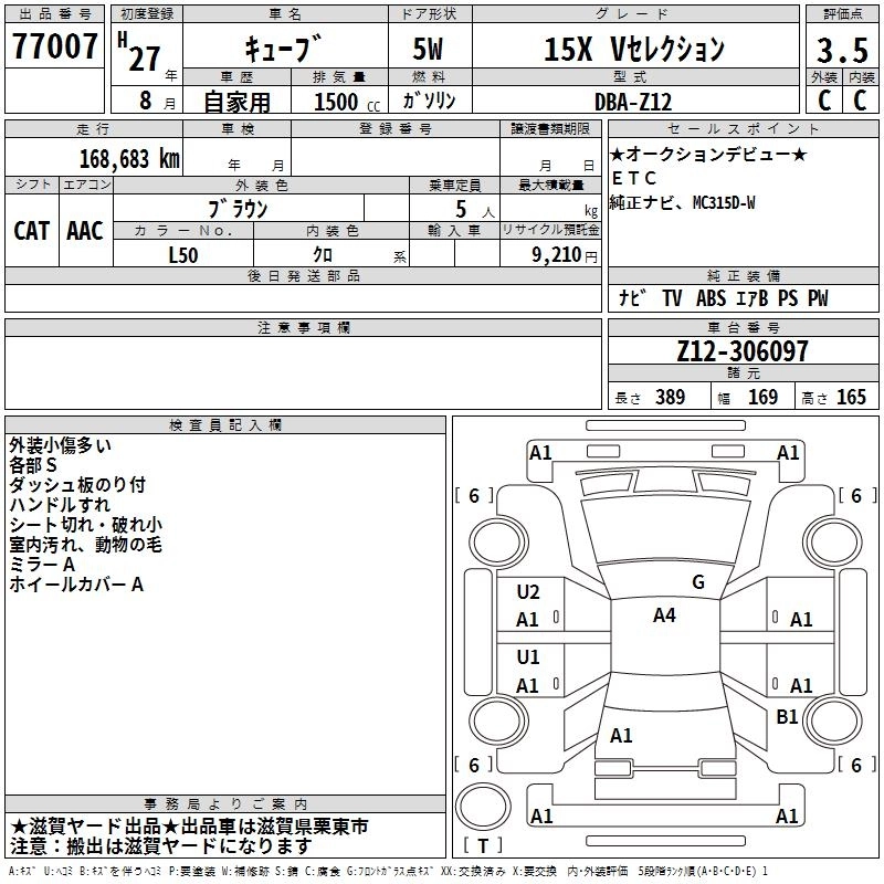 NISSAN CUBE 2015 г., лот № 77007