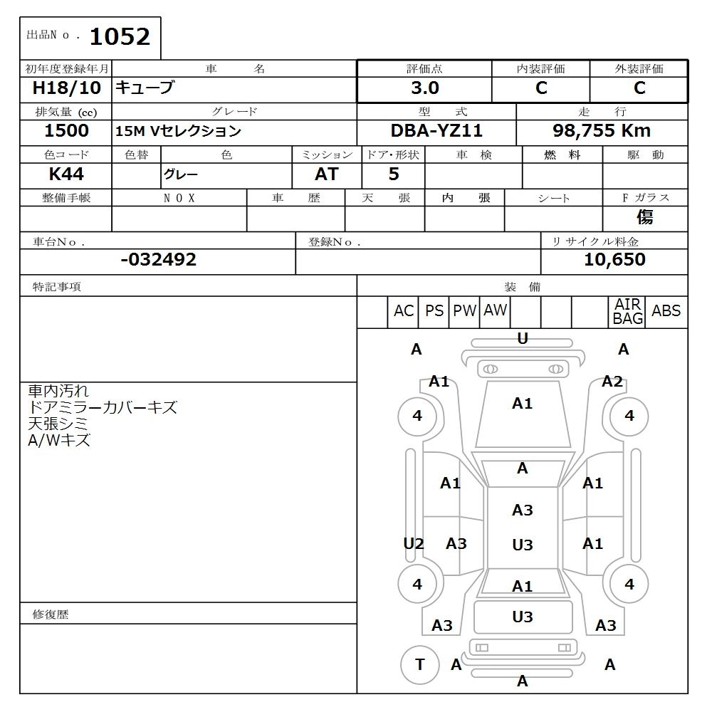 NISSAN CUBE 2006 г., лот № 1052