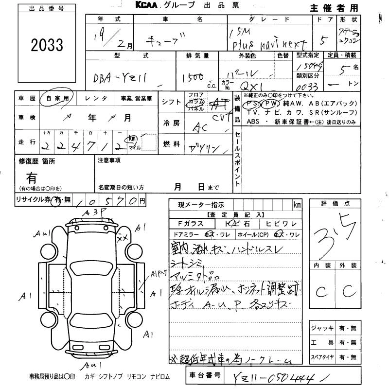 NISSAN CUBE 2007 г., лот № 2033