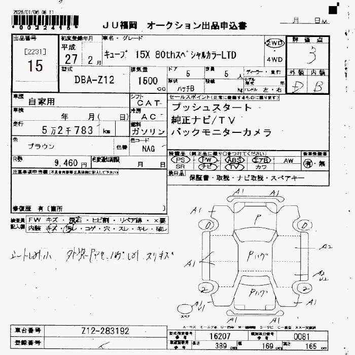 Статус не продан Лот 15 Аукцион JU Fukuoka Дата аукциона 23.01.2026