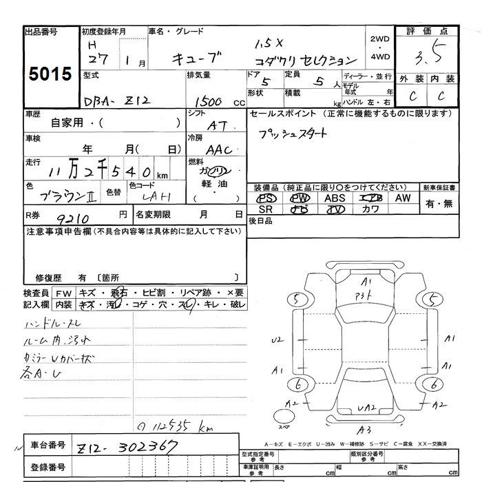 NISSAN CUBE 2015 г., лот № 5015