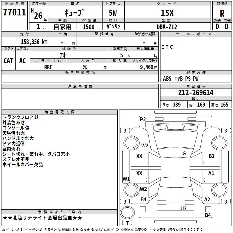 NISSAN CUBE 2014 г., лот № 77011