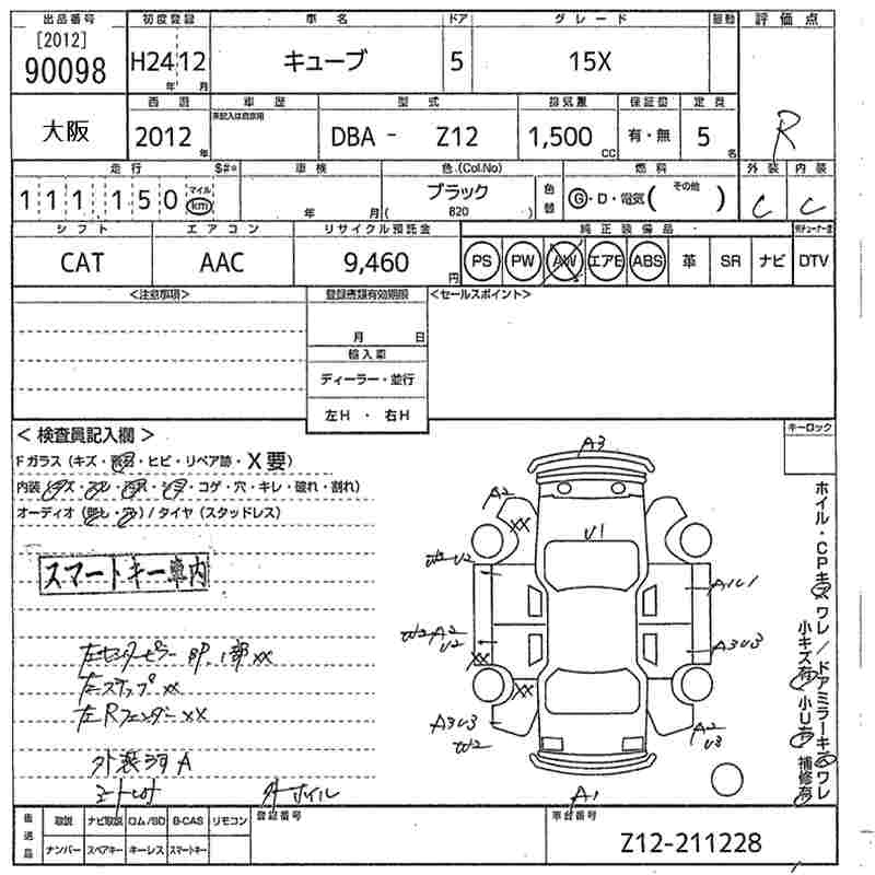 NISSAN CUBE 2012 г., лот № 90098