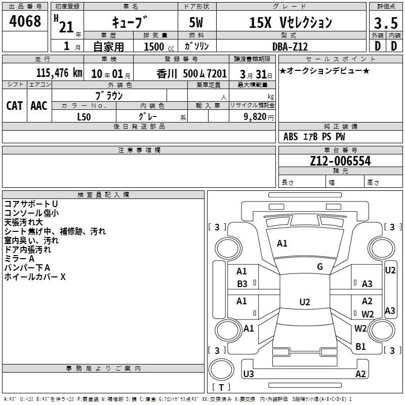 NISSAN CUBE 2009 г., лот № 4068