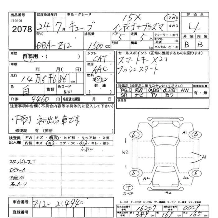 NISSAN CUBE 2012 г., лот № 2078