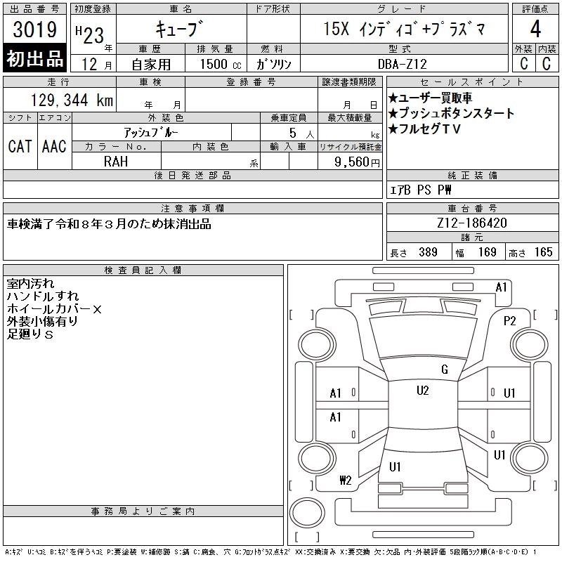 NISSAN CUBE 2011 г., лот № 3019