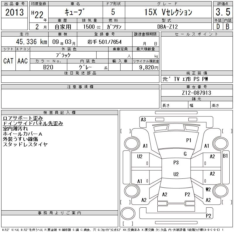 NISSAN CUBE 2010 г., лот № 2013