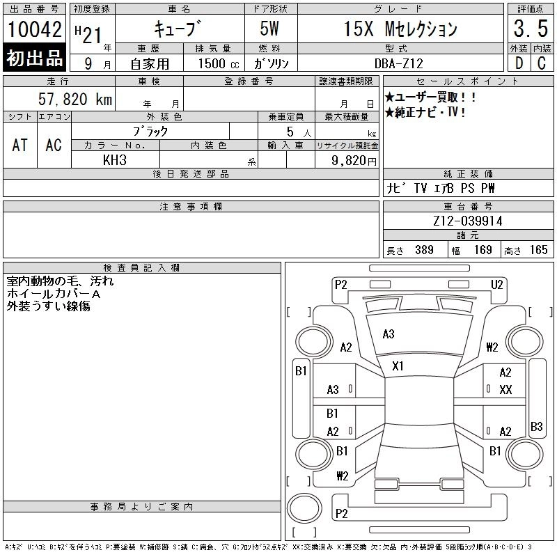 NISSAN CUBE 2009 г., лот № 10042