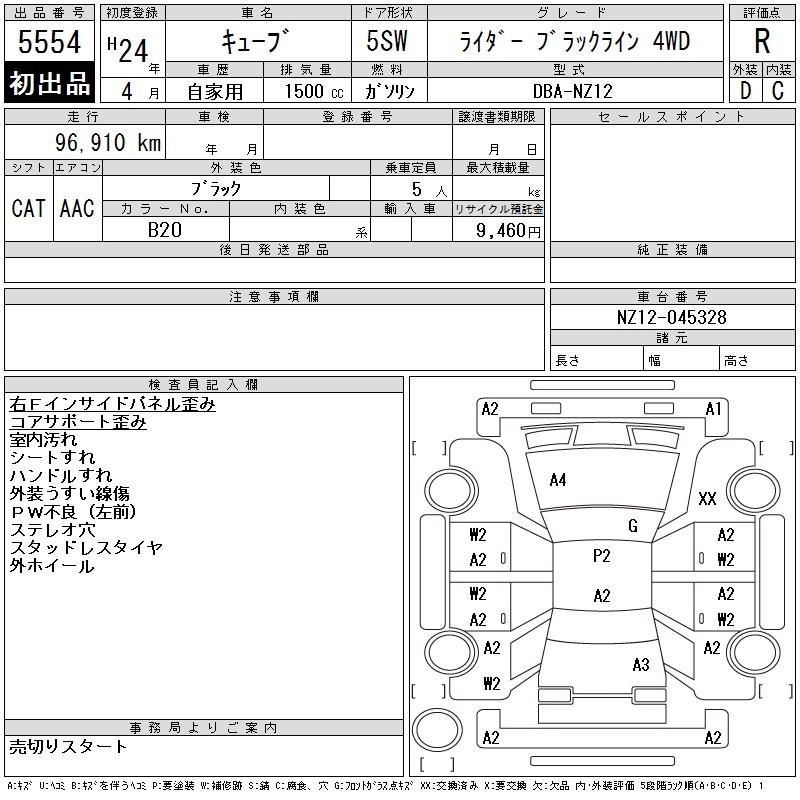 NISSAN CUBE 2012 г., лот № 5554